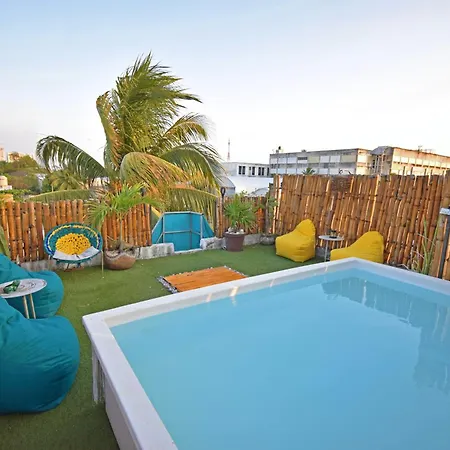 Tropical Bedroom -Casa Nomis Cancun的住客可用室外游泳池.该公寓离Palapas城市公园大约2.1公里. 这家民宿位于距离女人岛, 金塔纳*罗奥机场15公里的地方.